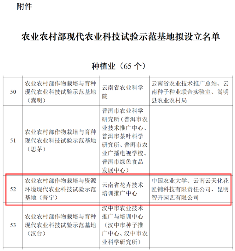 公司旗下花匠鋪科技入選農業農村部現代農業科技試驗示范基地擬設示范名單